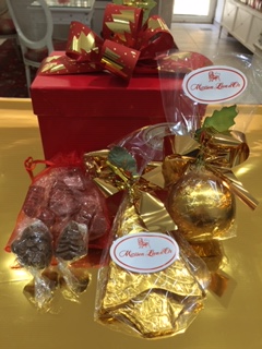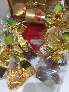 Contiene: 1 Chocolates navideños en bolsita de organza 1 borla decorada y 1 arbolito chocolate