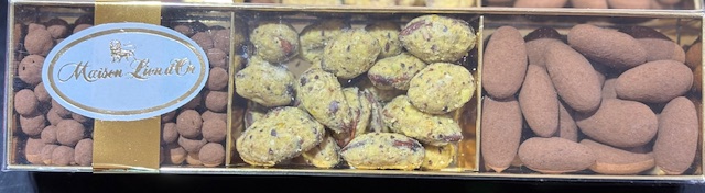 Quinoa pop, almendras con crema de pistachos y almendras al chocolate con cacao